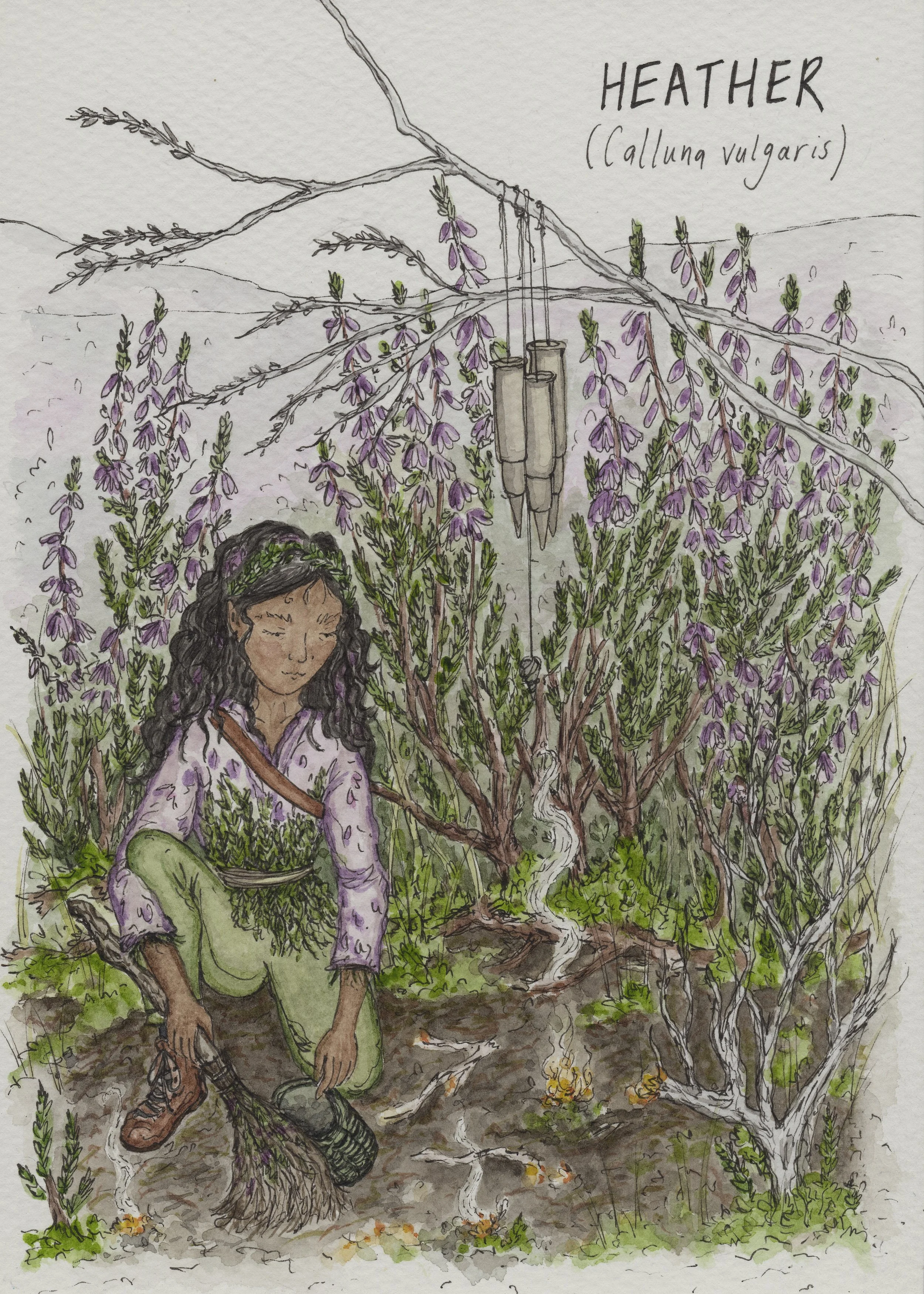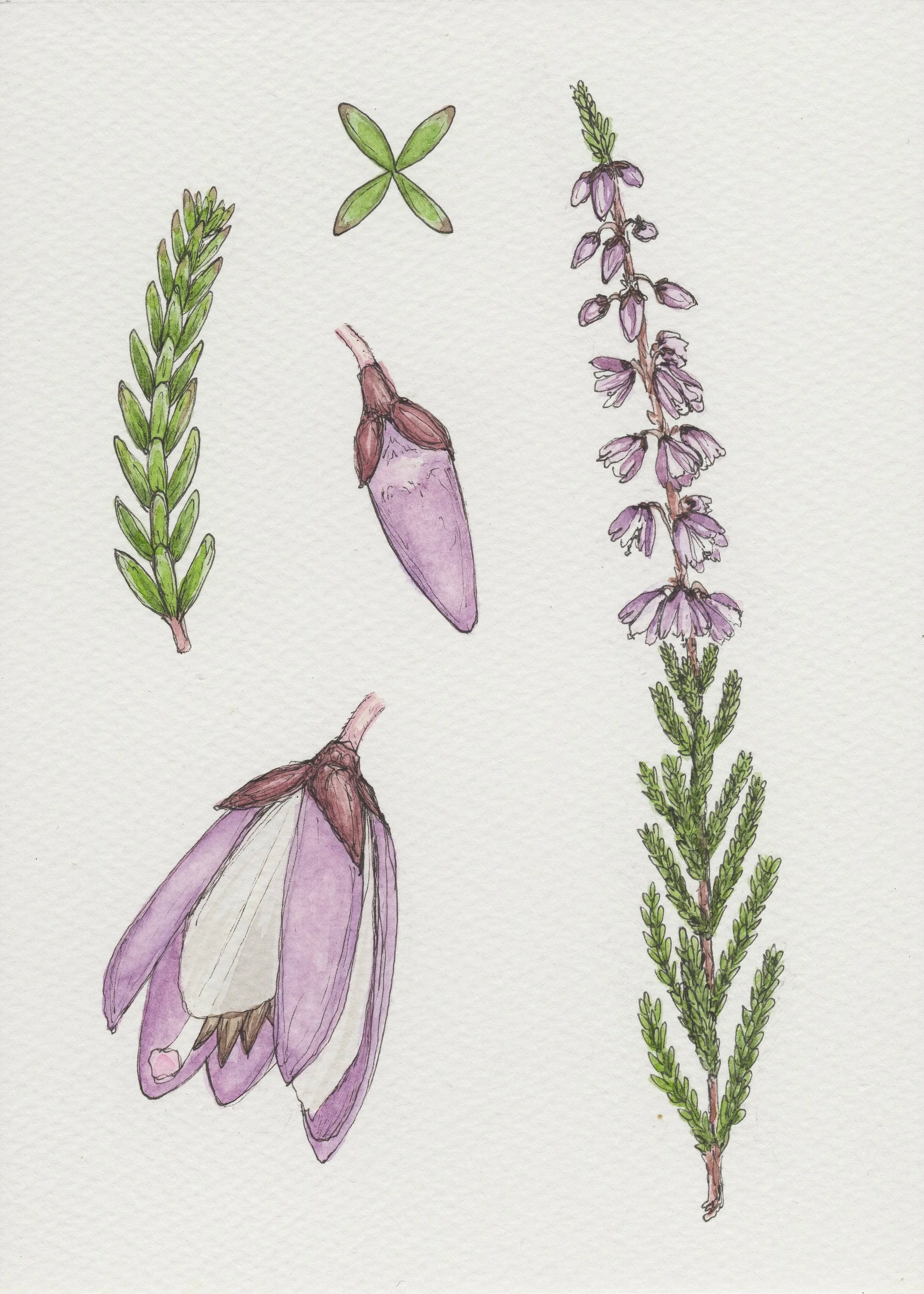 Heather (Calluna vulgaris) is an abundant plant on heathland, moorland and bogs. Like other members of the Ericaceae family, heather grows in acidic soils and has woody, coarse stems, which contrast with its delicate lilac flowers in summer. Historically, heather has been used for many purposes, such as to make brooms, which is how it got its Latin name; Calluna is derived from the Greek word “kallunein” meaning 'to brush' or ‘to sweep’. A common land management practice is heather burning, primarily used for managing red grouse habitats and sheep grazing. Burning promotes fresh growth of new shoots, palatable to grouse and deer, so is a traditional practice driven by those who pursue game hunting as a “sport”. Though this is now controversial, considering the long-term impacts on blanket bog ecosystems, carbon storage, and biodiversity.